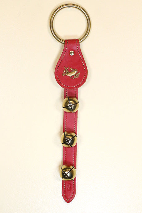 3 RED Bells on Wide 12 inch Strap - RED Sti...