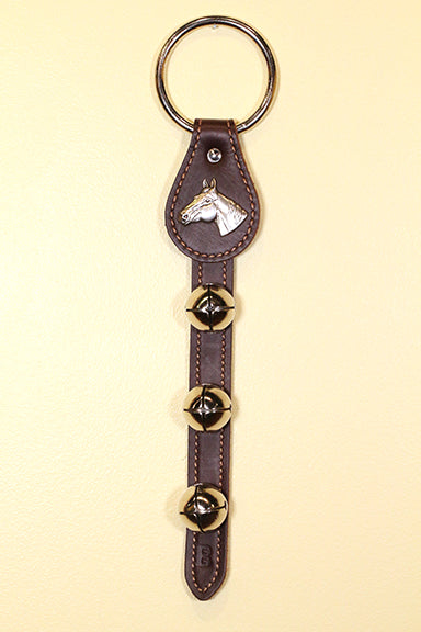 HORSE HEAD CHARM above 3 Bells on Leather S...