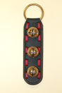 3 Solid Brass Belsnickel Bells on Leather Doorhanger with Other Color "Woven" Leather Trim, Lg Ring Top
