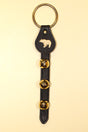 BEAR CHARM above 3 Bells on Leather Strap, Lg Ring Top