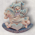 BLUE - BABY's 1st CHRISTMAS Ornament - SNOWBABY on ROCKING HORSE is backordered and will ship as soon as it is back in stock.
