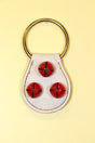 • RED Bells on Lg Leather Teardrop, Lg Ring Top