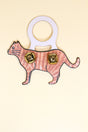 Hand-Painted Leather ORANGE TIGER STANDING CAT Doorknob Bell