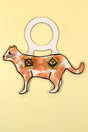 CAT (Standing) ORANGE & WHITE SPOTTED Hand-Painted Leather Doorknob Bell
