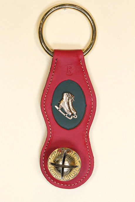 ICE SKATES CHARM on Leather Teardrop - 1 Bell