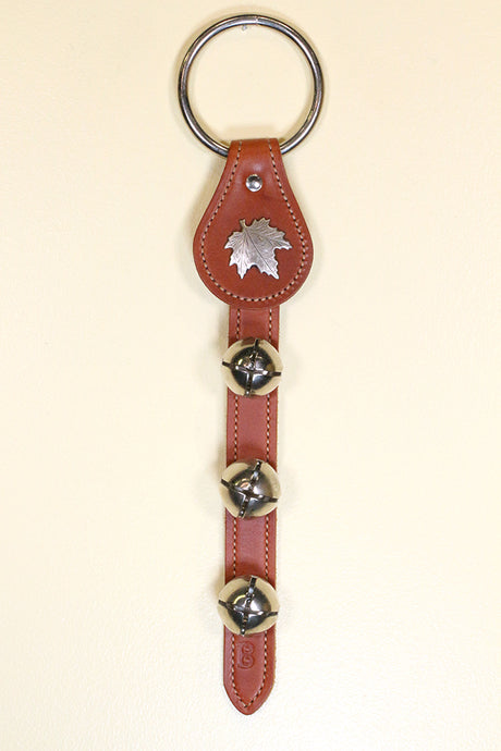 MAPLE LEAF CHARM above 3 Bells on Leather S...