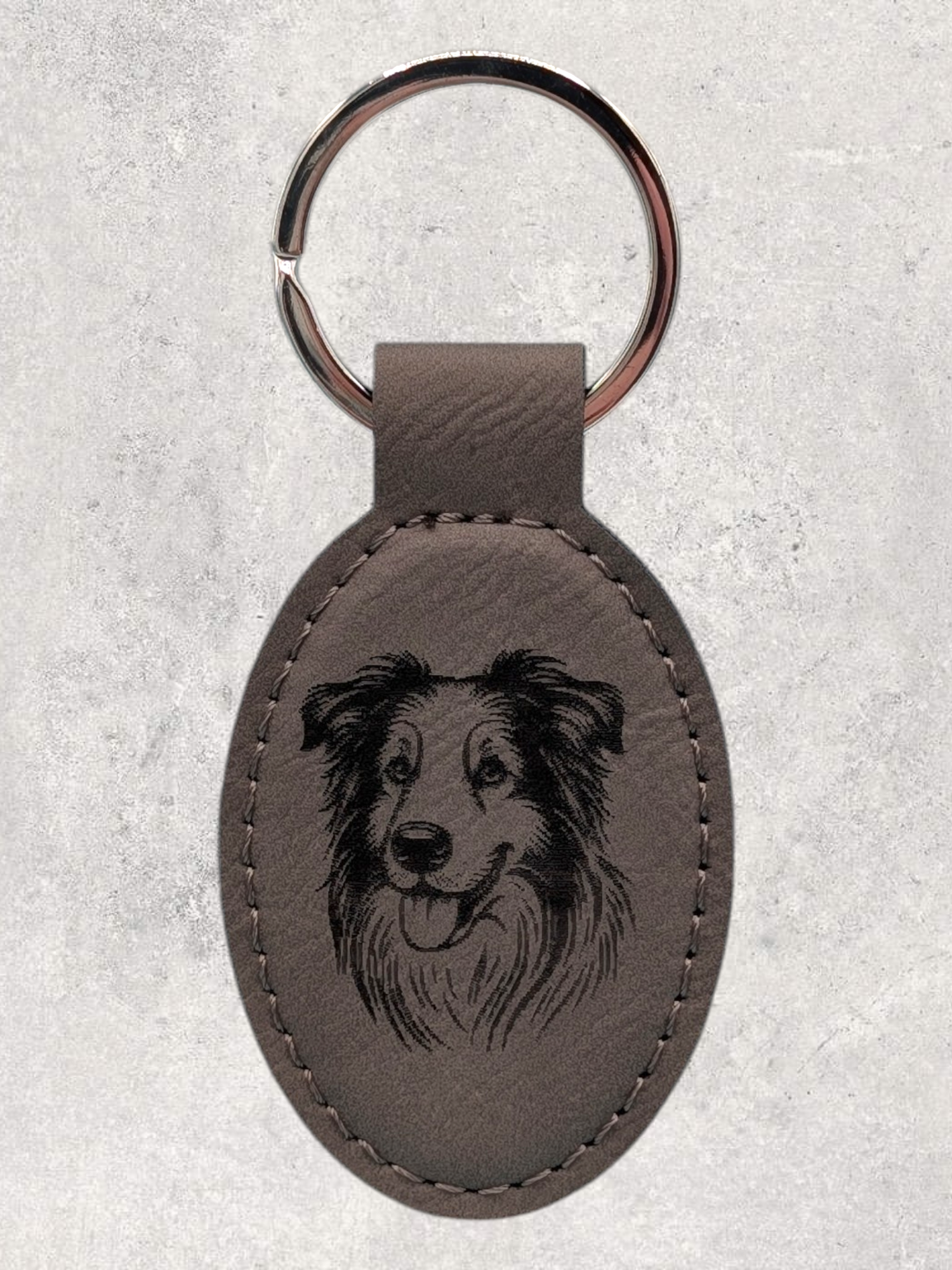 KEYCHAIN - BORDER COLLIE - Leatherette - Personalizable - Rectangular / Gray is backordered and will ship as soon as it is back in stock.