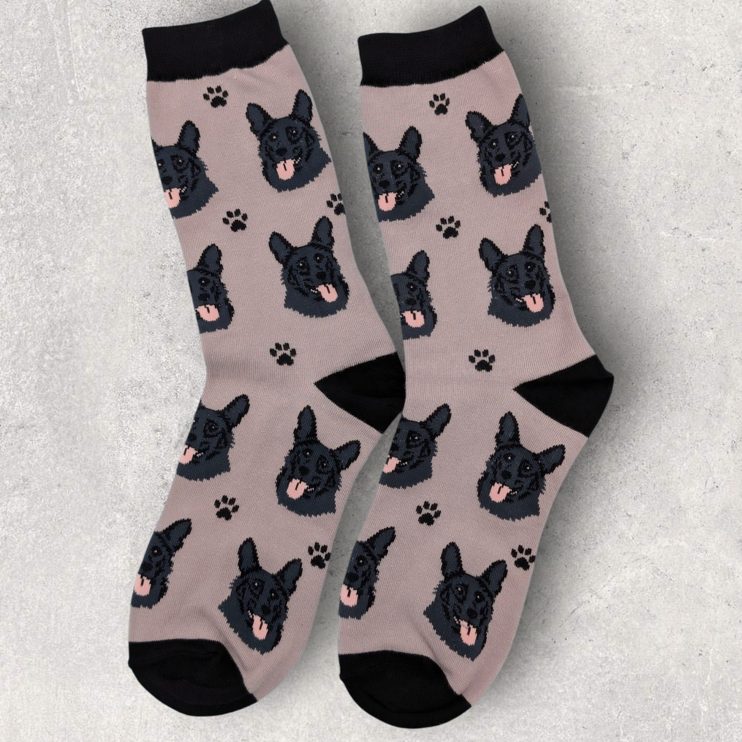 BLACK GERMAN SHEPHERD SOCKS - Show your love for that favorite 4-legged member of your family with this fun footwear.