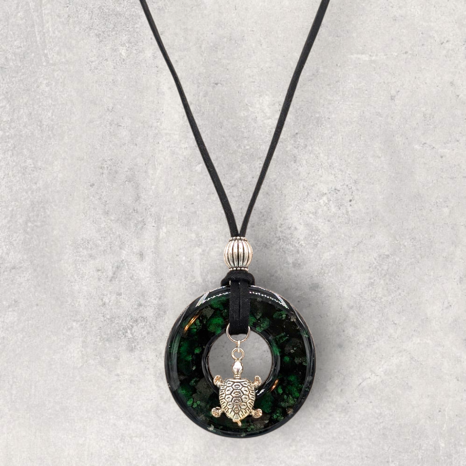 LOOPS JEWELRY - Large Black & Dark Green Necklace - Turtle Charm