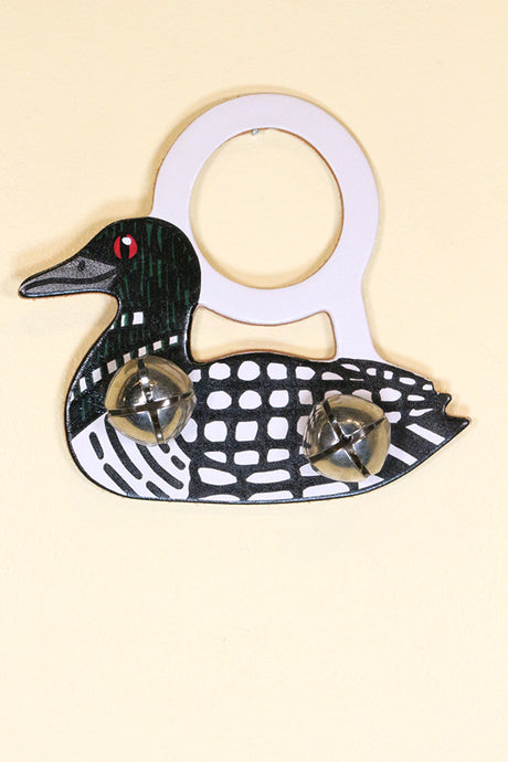 DUCK / LOON Hand-Painted LEATHER Doorknob Bell