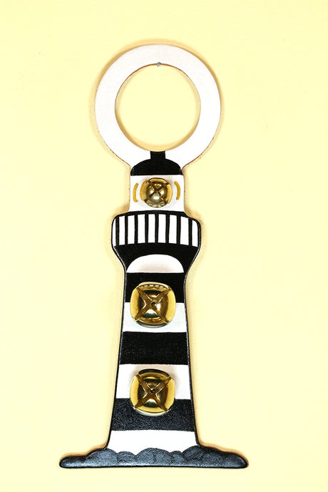 LIGHTHOUSE CHARM above 3 Bells on Leather S...