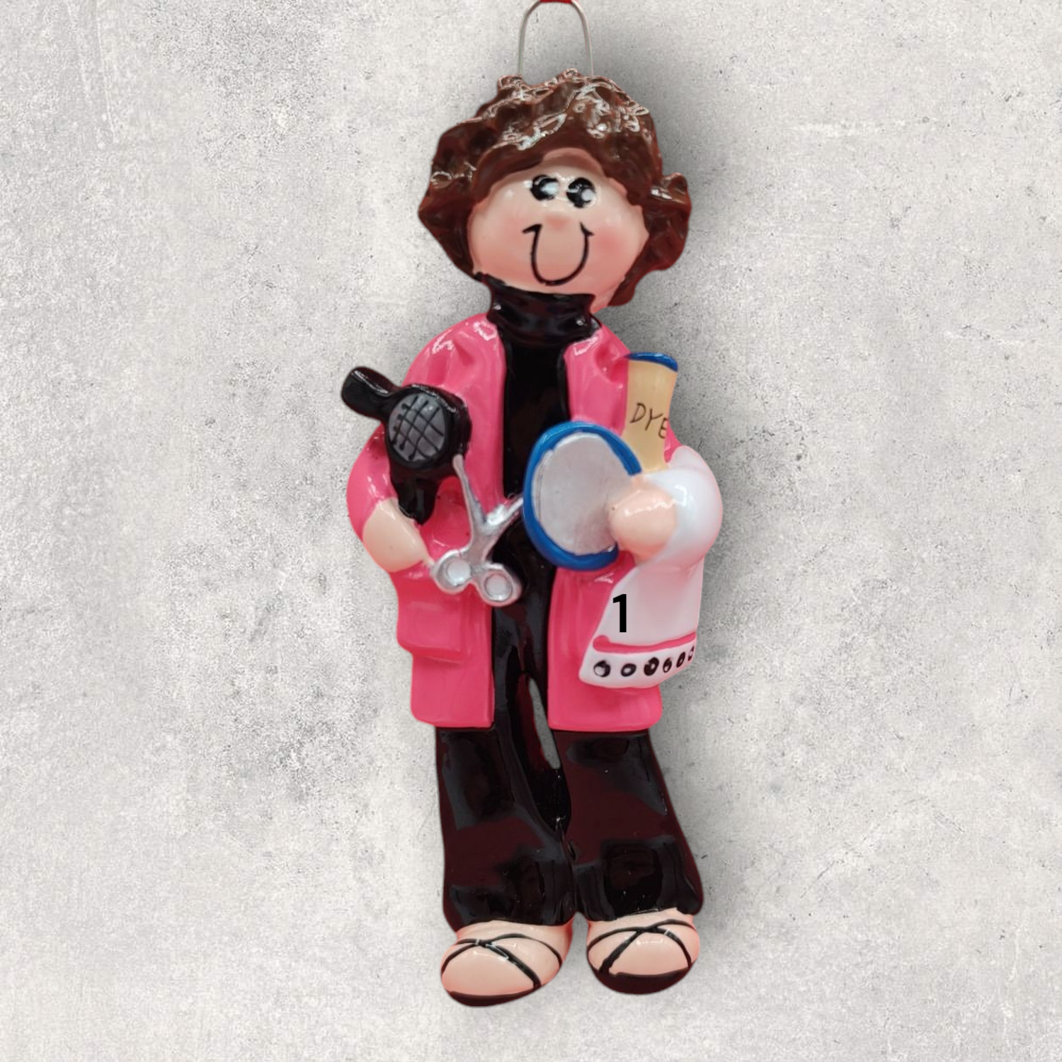 HAIRSTYLIST Ornament - PINK SMOCK is backordered and will ship as soon as it is back in stock.