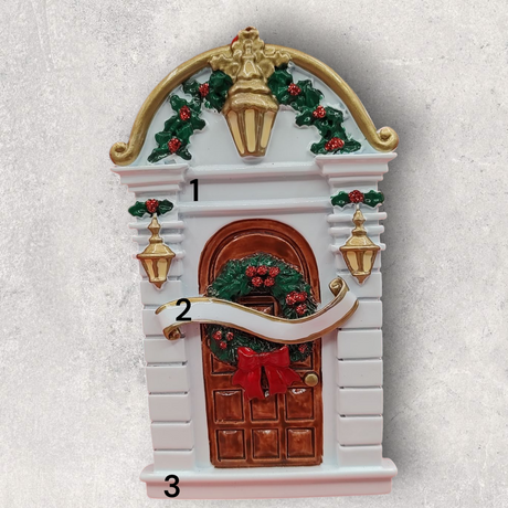 WHITE DOOR Ornament - with HOLLY GARLAND