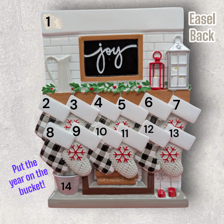 10 STOCKINGS on WHITE MANTEL TABLETOP DECOR...