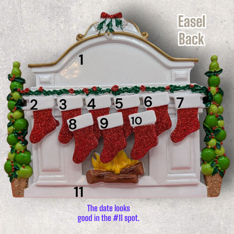 9 STOCKINGS on WHITE MANTEL TABLETOP DECORA...
