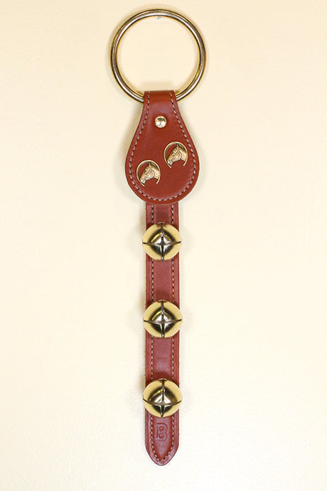 HORSESHOE CHARM above 3 Bells on Leather Strap