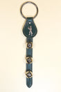 GOLFER CHARM above 3 Bells on Leather Strap, Lg Ring Top