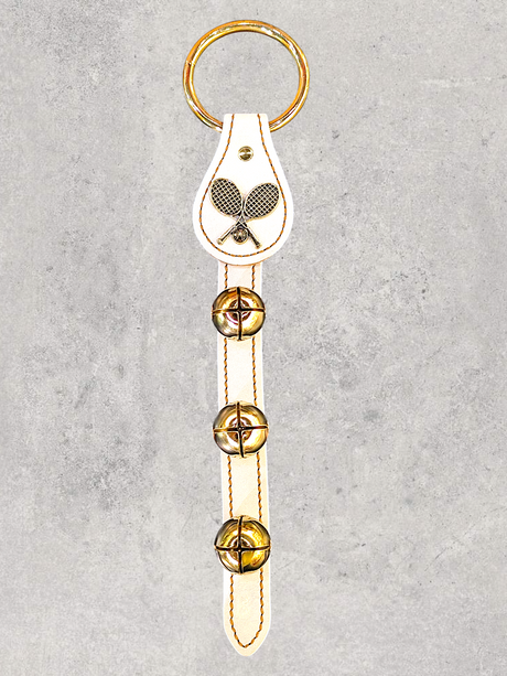TENNIS RACKET CHARMS above 3 Bells on Leath...