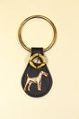 AIREDALE CHARM on Leather Teardrop, 1 Bell, Lg Ring Top