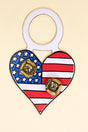PATRIOTIC HEART Hand-Painted LEATHER Doorknob Bell